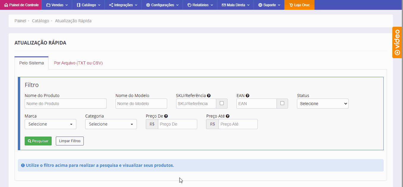Opcionalmente caso prefira poderá realizar a atualização de preço e estoque em massa utilizando um arquivo