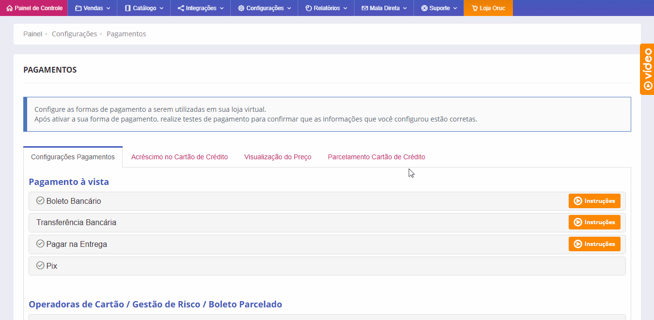 Para acessar vá em: Configurações > Formas de Pagamento > Boleto Parcelado