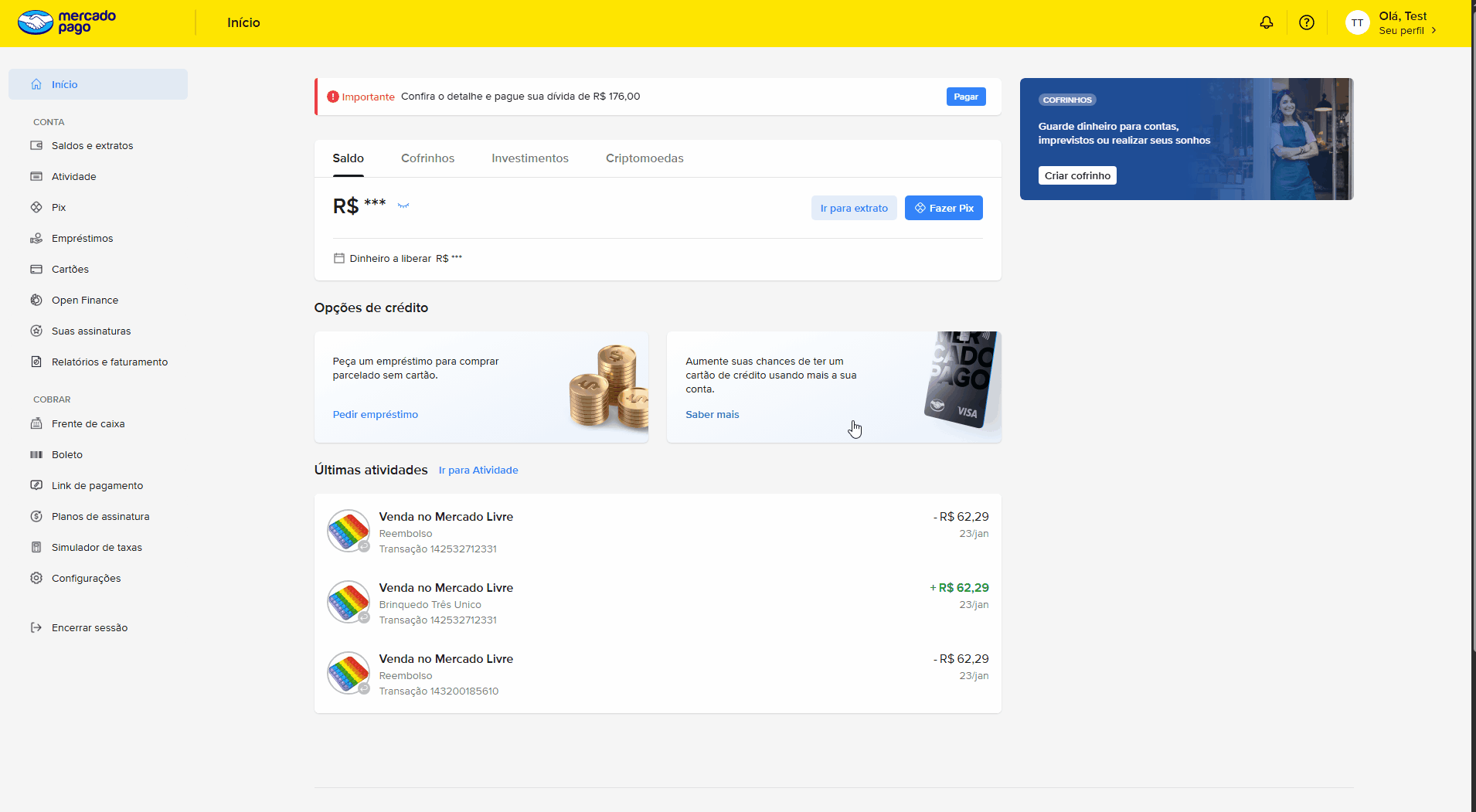 Atenção: Para o PIX funcionar, você precisa ter pelo menos uma chave PIX cadastrada no Mercado Pago.